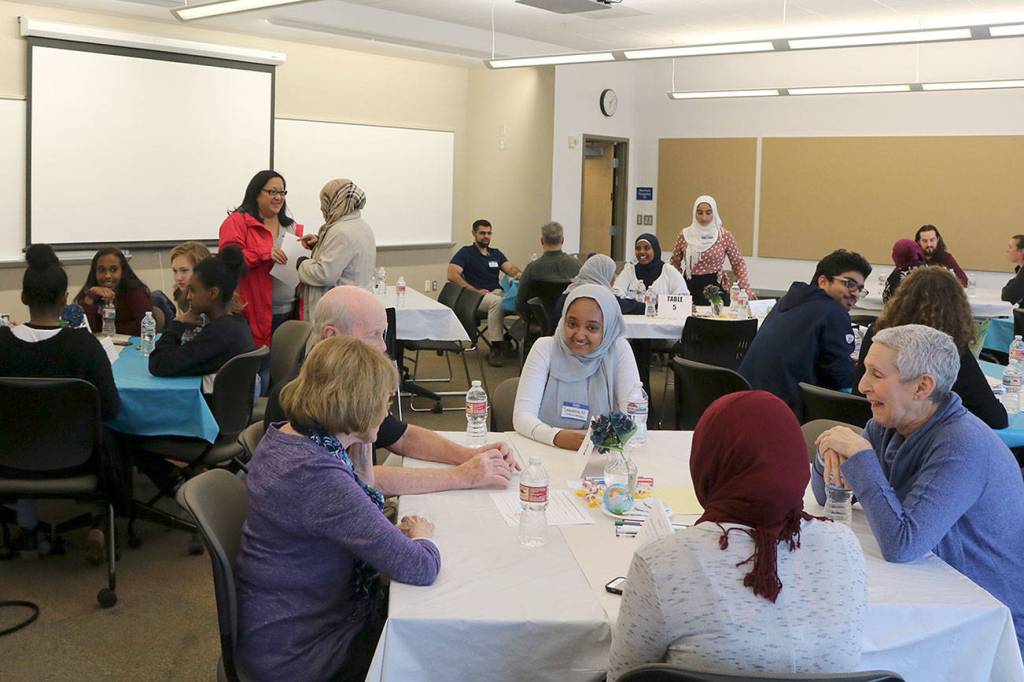 “We have youth paired with adults from the Muslim community that are facilitating their table conversations,” Lacy said. “Last year we did the first one of these, focused on women who wear the hijab, people could come and ask questions about that experience. This year we decided to focus on travel ban and what have been the impacts to local families dealing with that ban.”