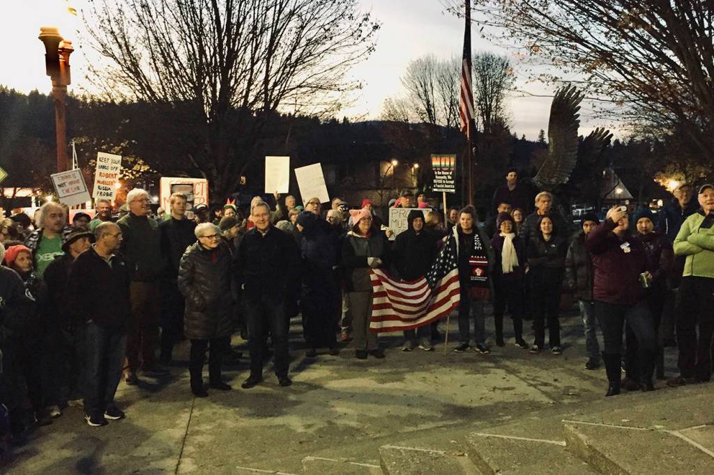 More than 100 people gathered on Nov. 8 at City Hall on Sunset Way to rally in support of Special Counsel Robert Mueller who is leading the investigation of collusion between President Donald Trump’s 2016 campaign and the Russian government’s election interference.