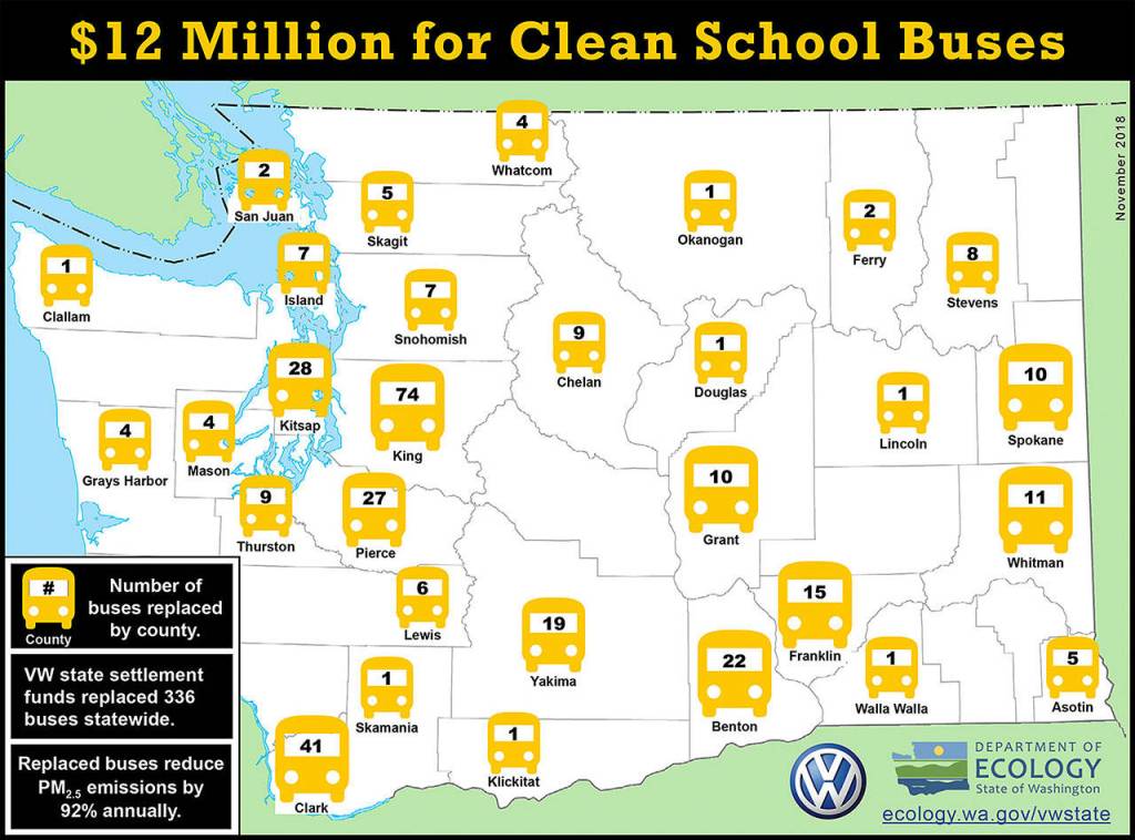 More than 80 Washington school districts and 19 public transit fleets will receive a total of $22 million to buy electric or low-emission buses as part of the state’s $28.4 million settlement from the Volkswagen diesel emissions scandal.