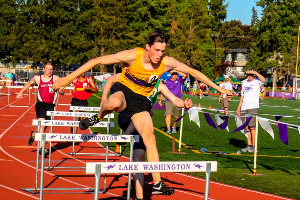 Issaquah Eagles sophomore Matt Wilkinson (pictured) registered a first-place finish in the 300 hurdles with a time of 39.85 at the 2019 4A KingCo track championships, which took place from May 8-10 at Lake Washington High School in Kirkland. Wilkinson edged out Eastlake’s Cooper Williams, who finished in second place with a time of 39.96.