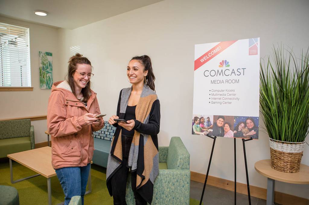 Comcast created two rooms for new residents with internet and technology resources. The rooms are The Comcast Community Room and Comcast Media Room. These are places where people can use internet for important things like taking classes, finding a job and much more.