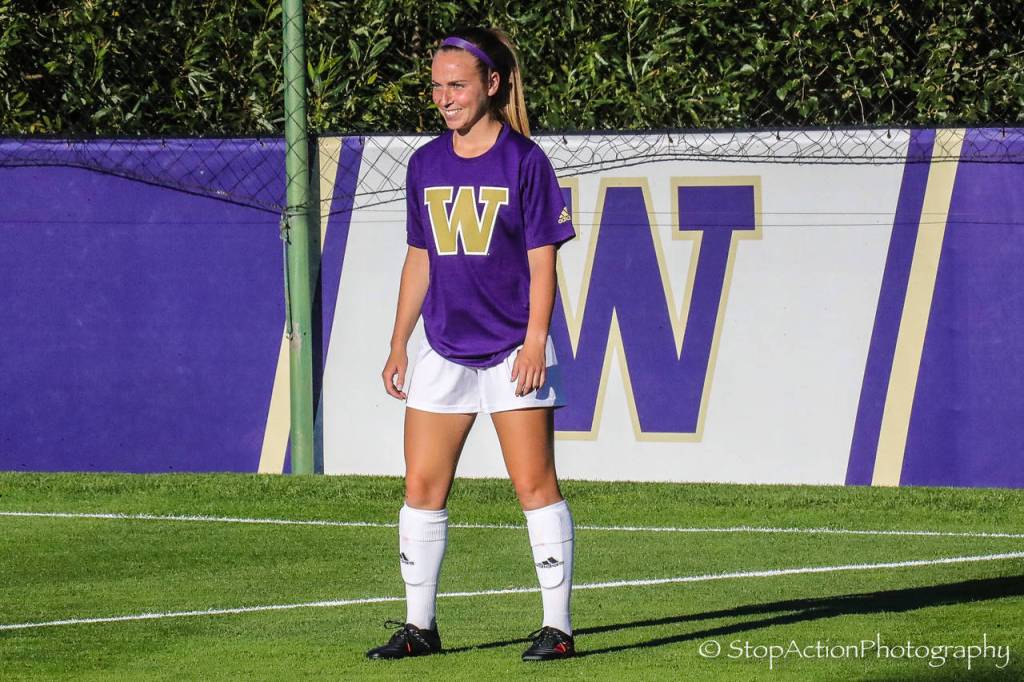 Claudia Longo, an Issaquah High alumnus and former ISC Gunner, practices with the University of Washington squad before its match against Seattle University. Photo courtesy of Don Borin/ Stop Action Photography