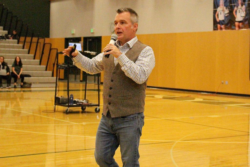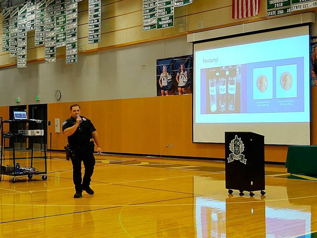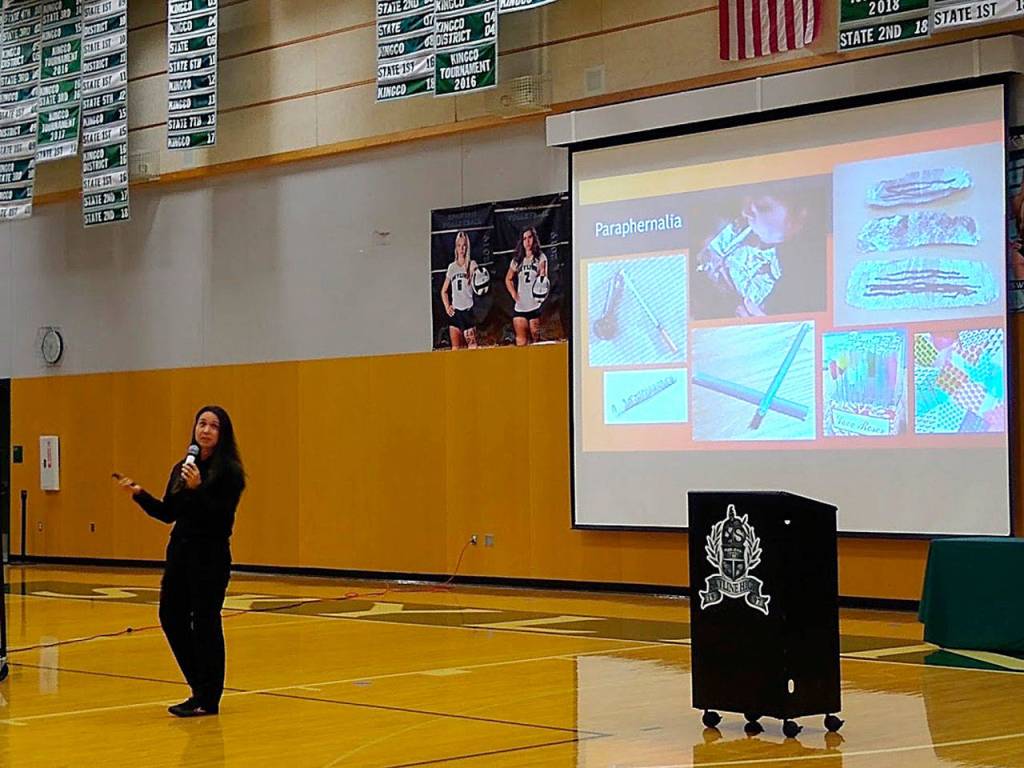Dr. Nicole Yarid, associate medical examiner with the King County Medical Examiner’s Office, addressed the gymnasium of concerned parents and offered more information about the drug.