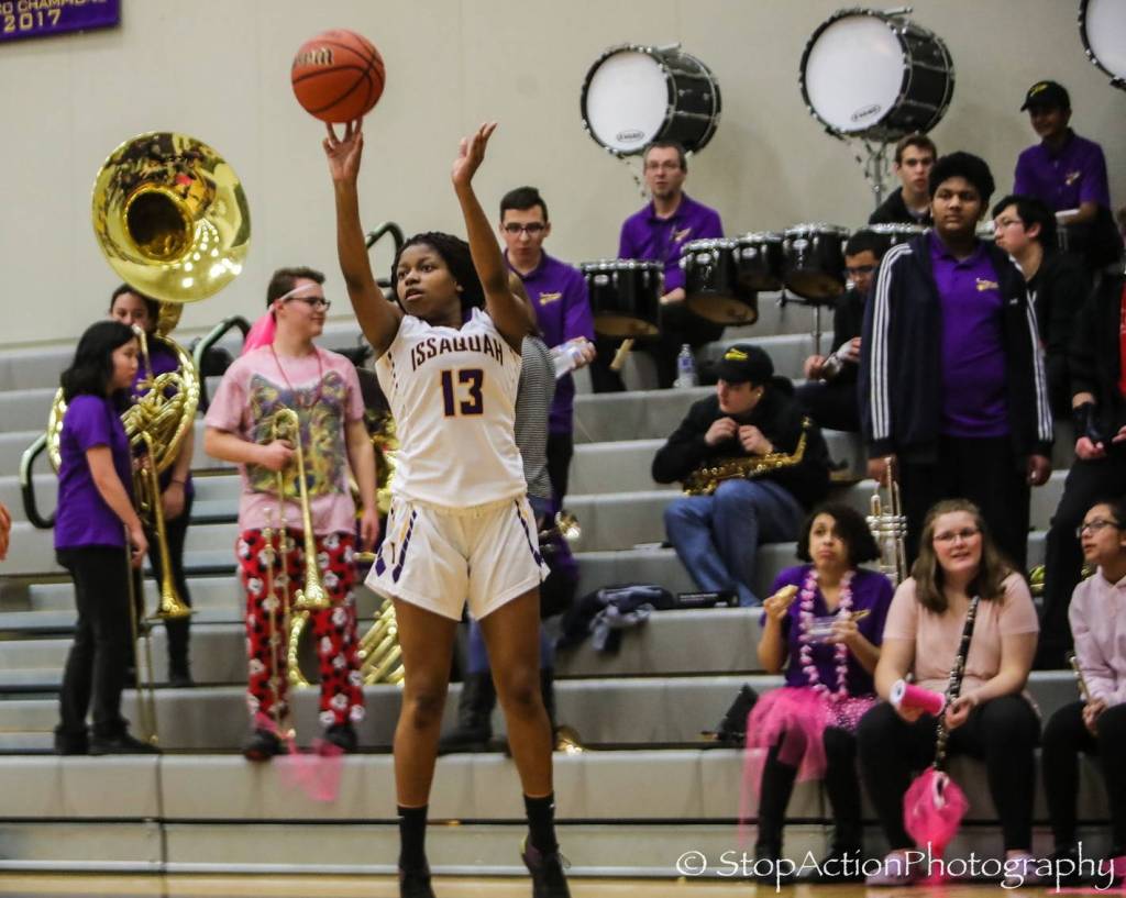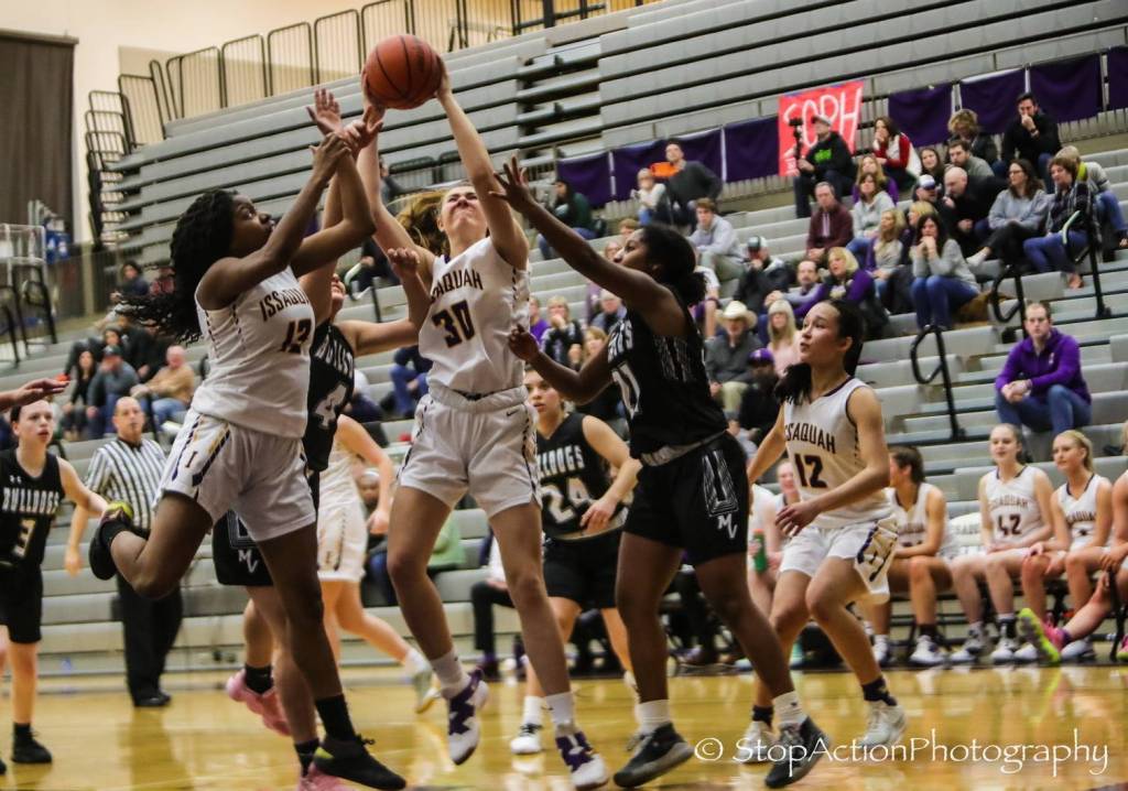 The Issaquah girls basketball team opened the district tournament with an emphatic 66-21 victory over Mount Vernon in a loser-out game on Feb. 14. In their second game, the Eagles battled back against Glacier Peak, but fell short in a 53-51 loss on Feb. 15.