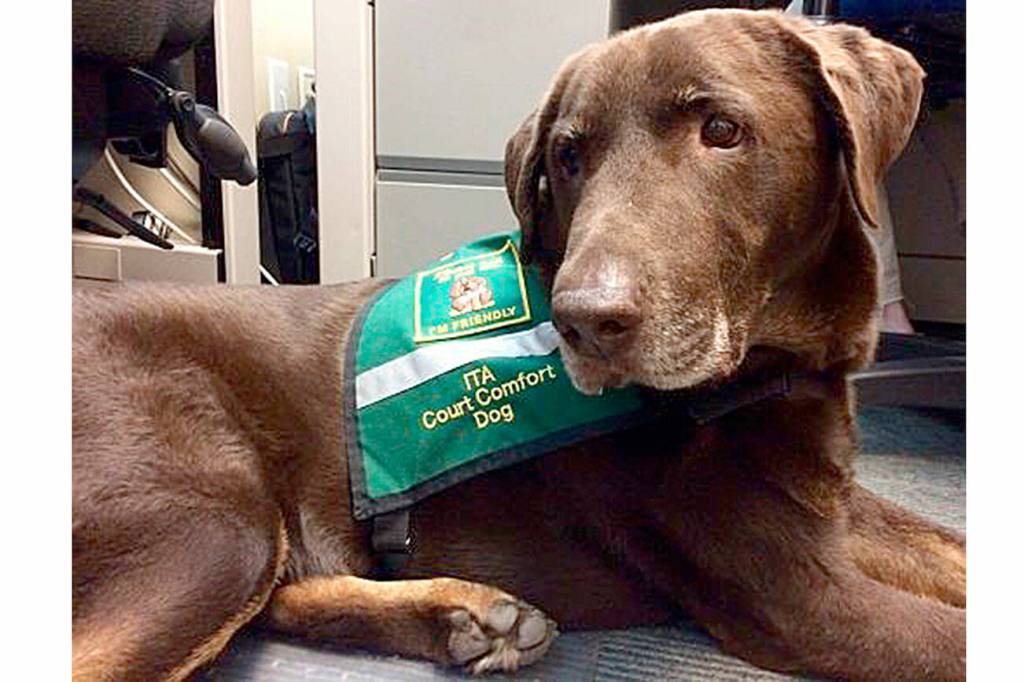 “These witnesses are often stressed and upset with what their family members, friends, loved ones and community members are going through,” according to the office. “To lower this stress, and to provide a calmer environment and help individuals through this difficult time, the [prosecuting attorney’s office’s] ITA team implemented the use of a court comfort dog — Murphy.”