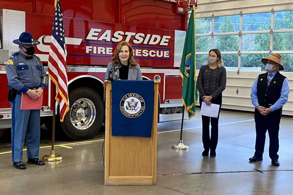 U.S. Rep. Kim Schrier (D-District 8) held a press conference Dec. 13 in North Bend to discuss how the new federal infrastructure bill could help bring improvements to a treacherous section of road along State Route 18.