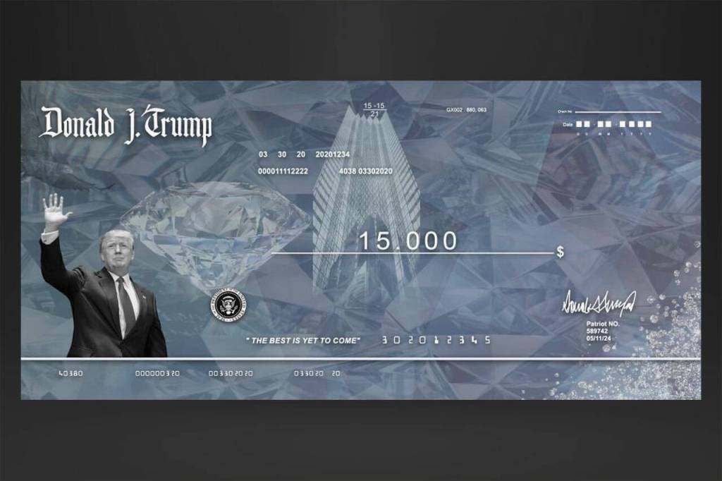 Diamond Trump Check’s shimmering exterior boosts visual attractiveness and durability. Thus, you can be sure that the item will withstand wear and tear and look beautiful for years to come. Trump supporters have praised the quality of the check and its design, saying that it is a fitting tribute to the former President.