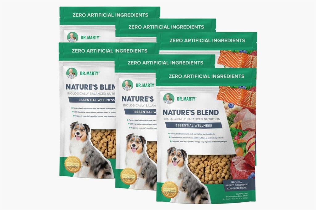 Created by Dr. Martin Goldstein, a renowned holistic veterinarian with over four decades of experience, Dr. Marty’s Nature’s Blend is designed to mimic the diet our dog’’ ancestors ate in the wild. It’s an advanced, freeze-dried raw dog food designed to provide your dog with a balanced and complete diet – regardless of breed, size, or age.
