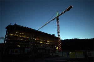 During the day it’s easy to notice the 162-foot tower crane high above the site of the future…