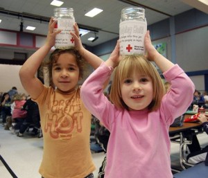 Even the little ones are lending a hand - Kindergarden students Theresa Hard and Elizabeth Posten are hoping their school can raise $500 to send to the American Red Cross to help the recovery effort in Haiti.