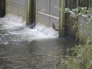 A salmon executes a graceful jump at the Issaquah hatchery.