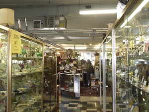 Gilly, a rescued Conure (a small parrot) greets you upon entering Gilman Gallery Antiques. Customers nosh on cookies…