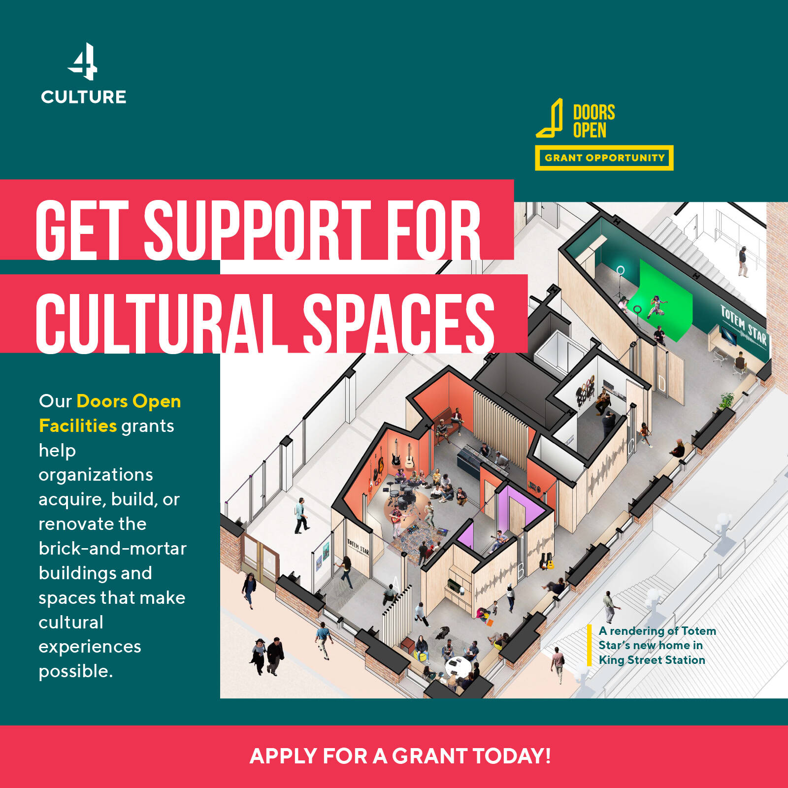 To learn more about these programs and eligibility criteria, visit 4culture.org/doors-open.