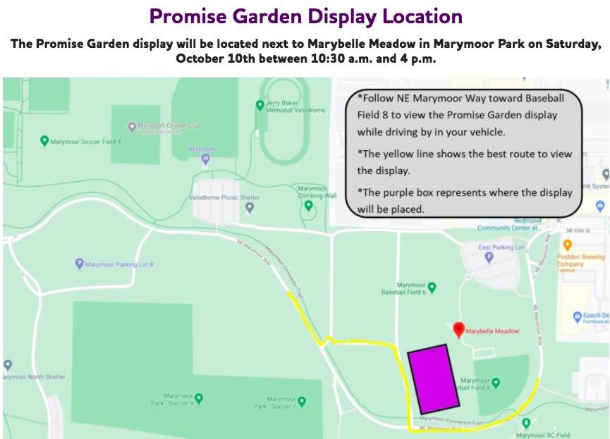 In addition to the walk, anyone can drive by Marymoor Park for a Promise Garden display honoring all impacted by the disease, 10:30 a.m. to 4:00 p.m., next to baseball field No. 8 north of Northeast Marymoor Park Way.