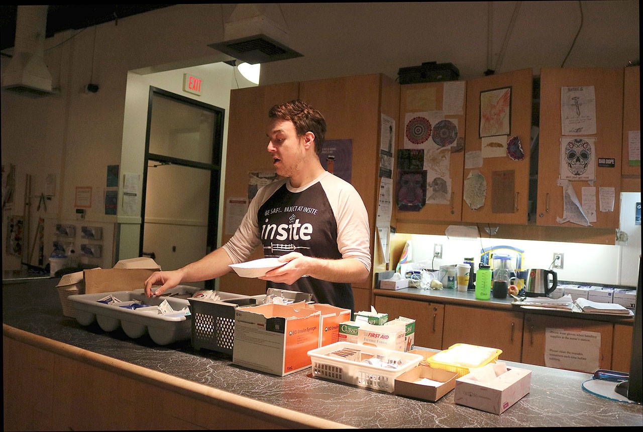 Overdoses typically happen seven to eight times a day, though Gauthier said he once saw 14 in two hours. No one has ever died of an overdose at Insite.
