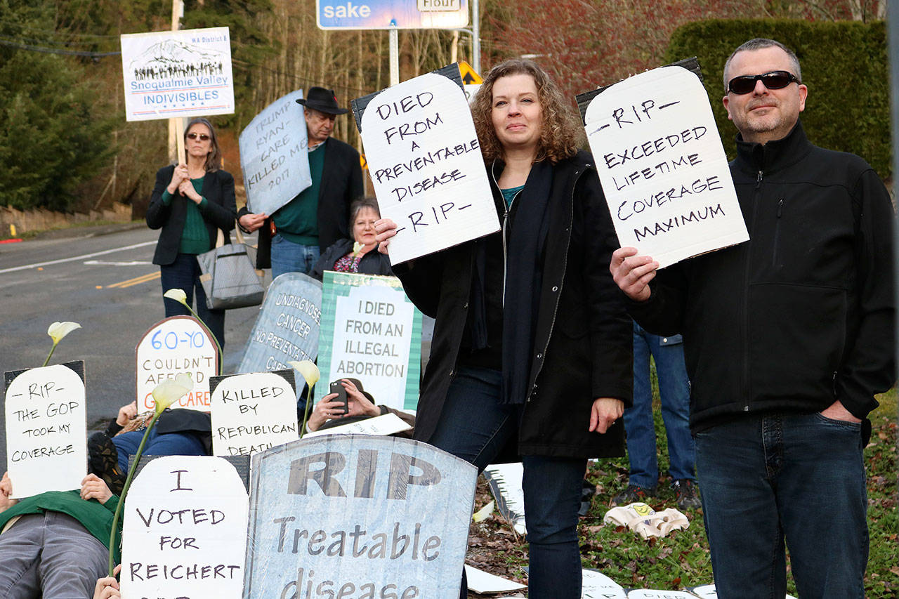 “Dave Reichert looked me in the face and said no one is going to lose health care,” said Michelle Straka, leader of Snoqualmie Valley Indivisibles, the other organizing group. “I don’t believe him.”