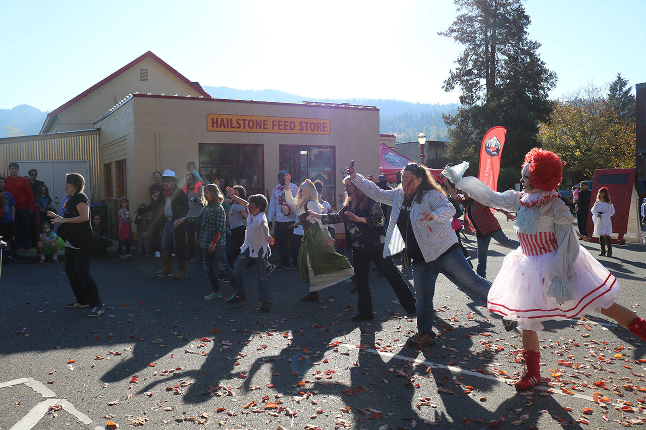 When they were all danced out, the older zombies headed to the Issaquah Brewhouse, where Fred and the Ghouls provided not undead but live music. The younger zombies enjoyed the classic Halloween film “Hocus Pocus” at a party at the Issaquah Train Depot.