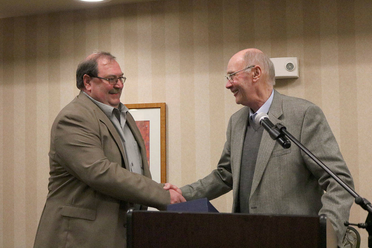 Mayor Fred Butler presented Joe Forkner with the city of Issaquah Hall of Fame Award.