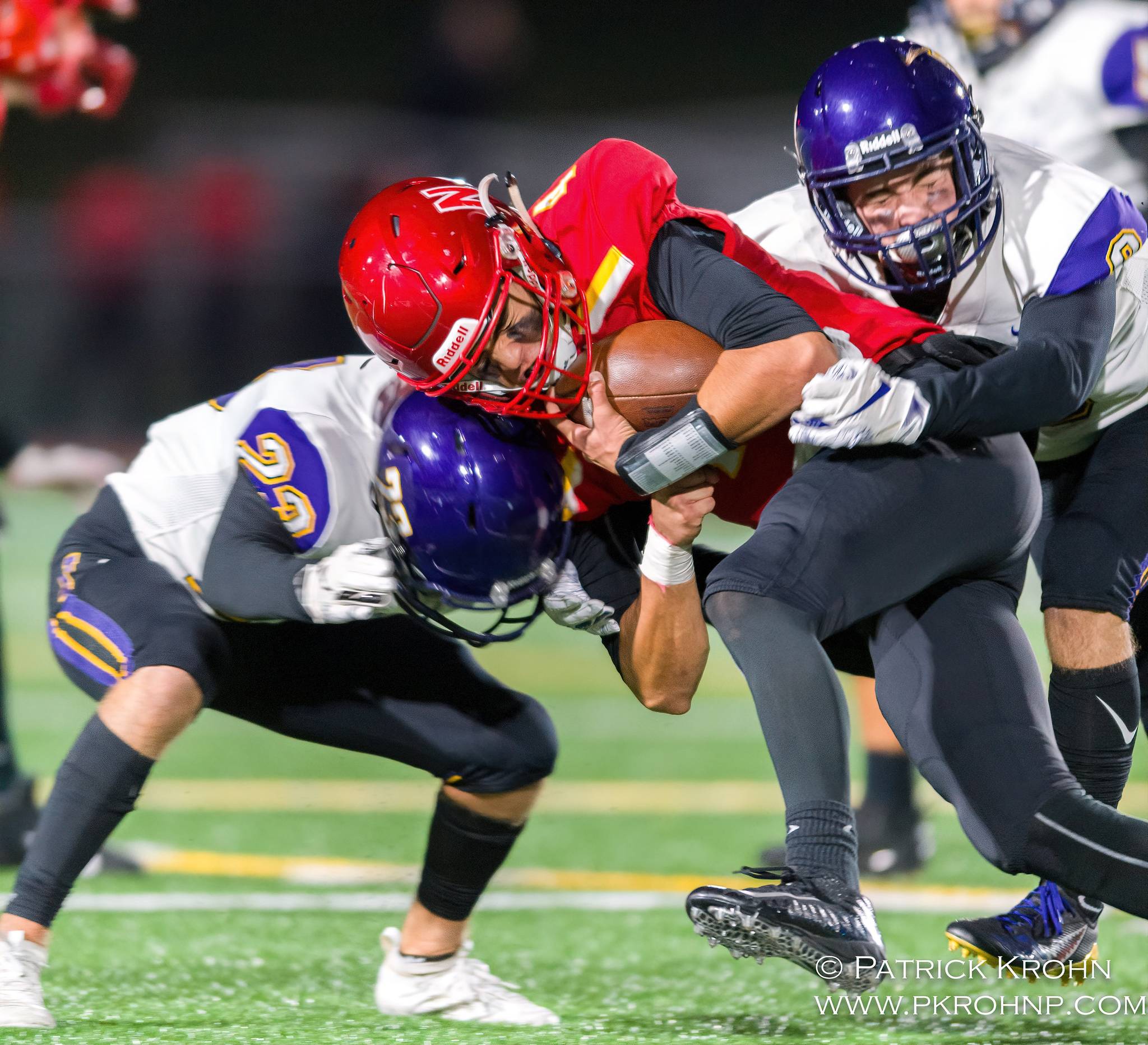 With the Knights facing a long fourth down at midfield, Rouse dropped back to pass, but was hit by Sweeney, causing a fumble that was recovered by Baker with 3:40 left in the fourth quarter. The Knights defense held the Eagles offense, forcing them to punt with just over two minutes left. For the second time in the quarter, Sweeney forced Rouse to fumble the ball, and once again, Baker was there to recover for Issaquah. Sweeney said the pass rush got off to a slow start in the game, but they turned up the pressure when it mattered.